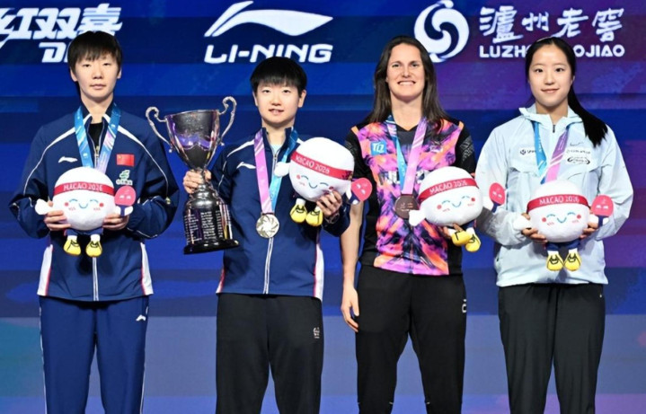 王曼昱莫得错愕,靠反手缺点追回1分至6-7,孙颖莎实时融合,连得4分以11-6拿下,最终4-1赢得决赛,收效达成三连冠。