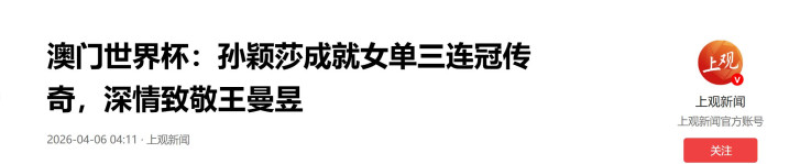其实,岂论是孙颖莎的三连冠,还是王曼昱的奋发拼搏,王人展现了国乒选手的仪态。
