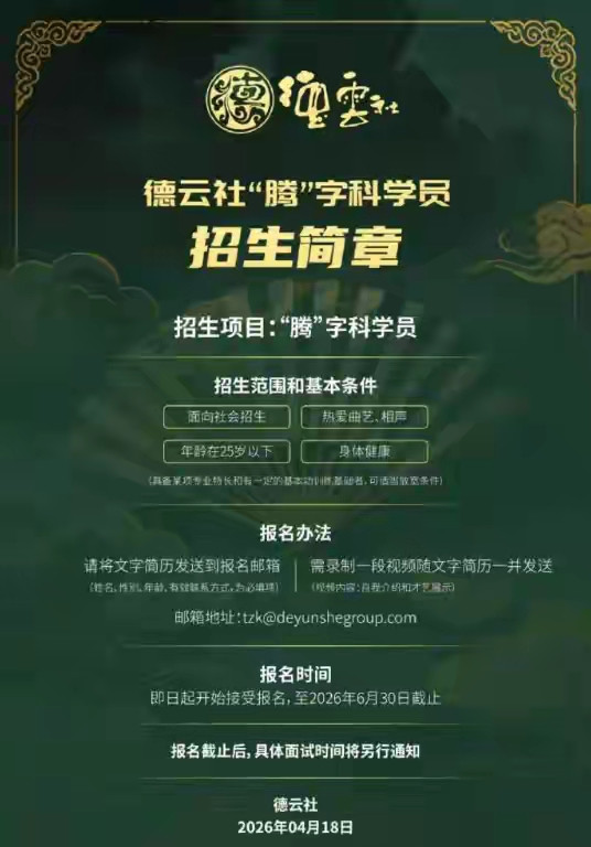 按照“云鹤无影无踪,龙腾四海”的八字科排序,“腾字科”稳稳占据了第六把交椅。从昔日岳云鹏的“云字科”、孟鹤堂的“鹤字科”一都走来,传统师承体系不仅是德云社的法规,更是其制造话题与流量的金字牌号。这次招生门槛十分明晰:25岁以下、醉心曲艺的后生,凭借翰墨简历和才艺展示视频,便能在6月30日赶赴敲这扇通往相声江湖的大门。在这个短视频造星的时期,德云社依然坚捏着最古朴的“投名状”阵势,看似传统,实则是在海量泛文娱实质中筛选真确耐得住一身的苗子。