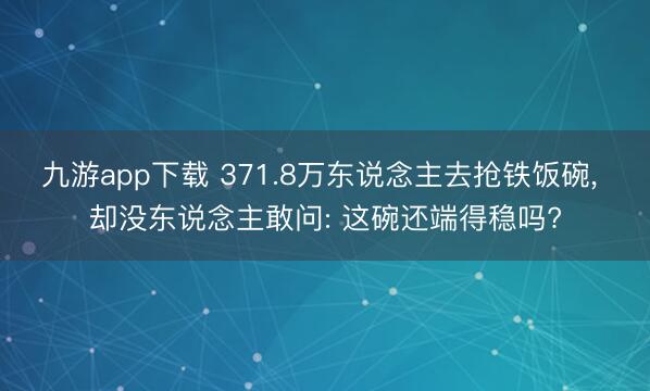 九游app下载 371.8万东说念主去抢铁饭碗, 却没东说念