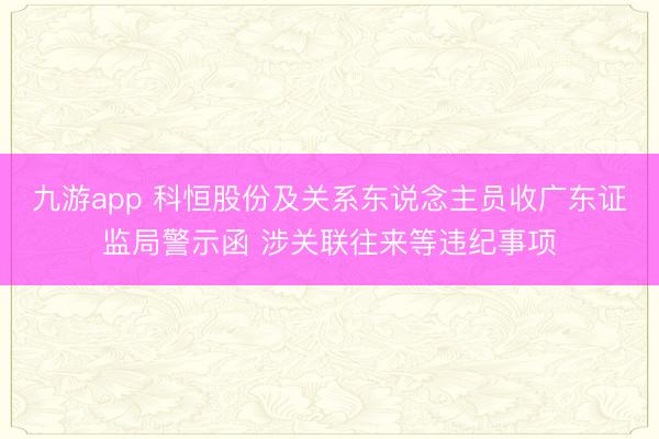 九游app 科恒股份及关系东说念主员收广东证监局警示函 涉关