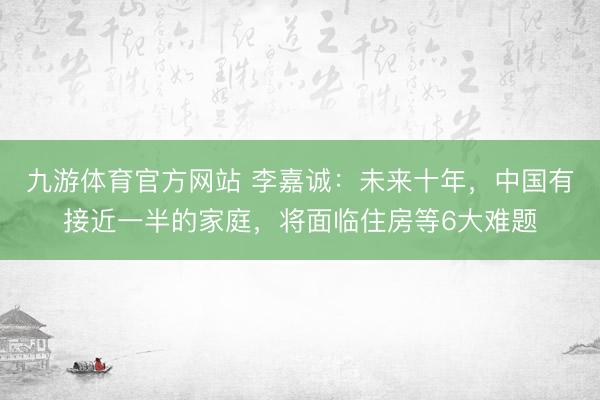 九游体育官方网站 李嘉诚:未来十年,中国有接近一半的家庭,将