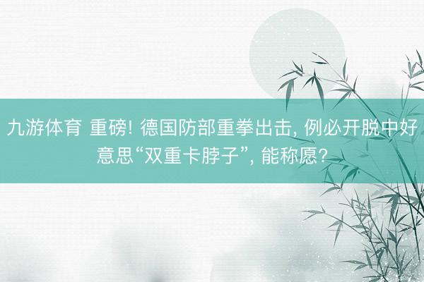 九游体育 重磅! 德国防部重拳出击, 例必开脱中好意思“双重