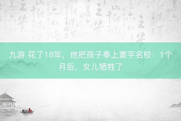 九游 花了18年,他把孩子奉上寰宇名校:1个月后,女儿牺牲了