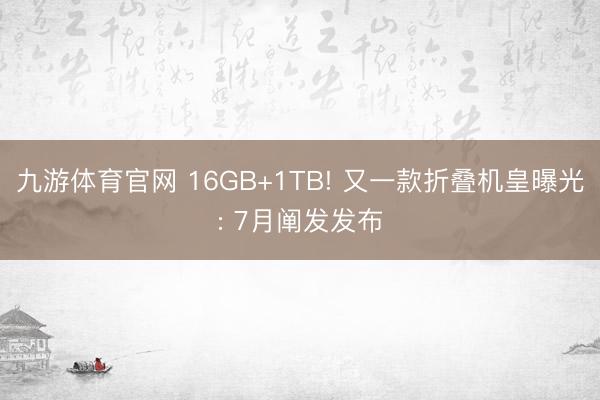 九游体育官网 16GB+1TB! 又一款折叠机皇曝光: 7月