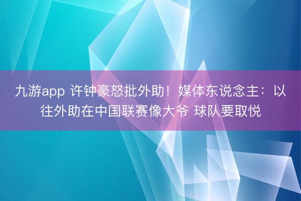 九游app 许钟豪怒批外助!媒体东说念主:以往外助在中国联赛