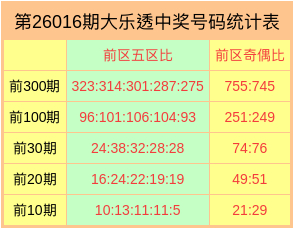 第26016期大乐透奖号数据统计表
