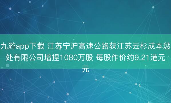 九游app下载 江苏宁沪高速公路获江苏云杉成本惩处有限公司增