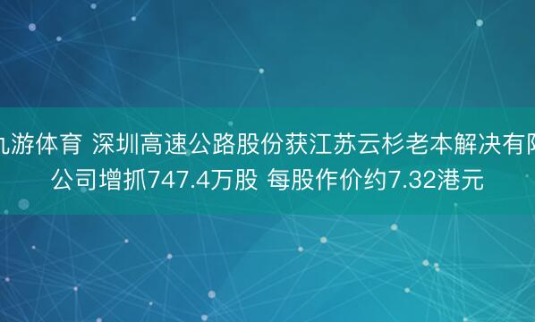 九游体育 深圳高速公路股份获江苏云杉老本解决有限公司增抓74