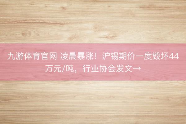九游体育官网 凌晨暴涨!沪锡期价一度毁坏44万元/吨,行业协