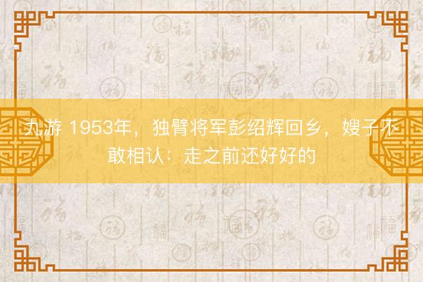 九游 1953年,独臂将军彭绍辉回乡,嫂子不敢相认:走之前还