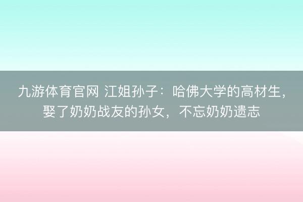 九游体育官网 江姐孙子:哈佛大学的高材生,娶了奶奶战友的孙女
