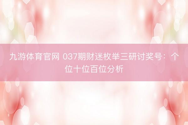 九游体育官网 037期财迷枚举三研讨奖号:个位十位百位分析