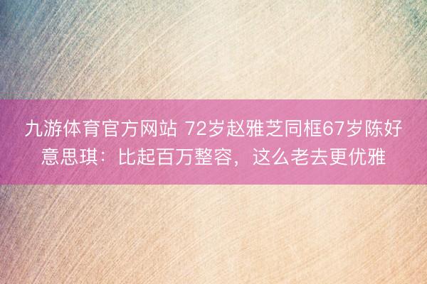 九游体育官方网站 72岁赵雅芝同框67岁陈好意思琪:比起百万