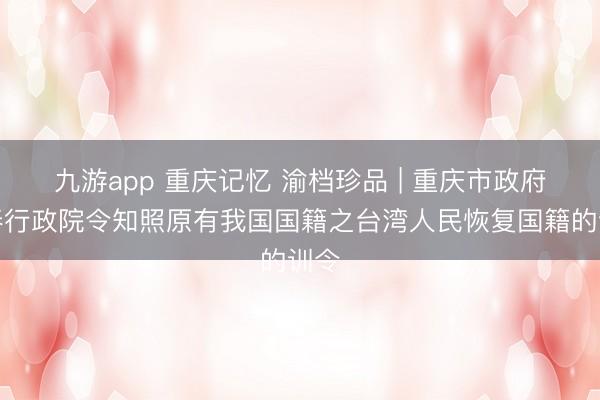 九游app 重庆记忆 渝档珍品 | 重庆市政府为奉行政院令知