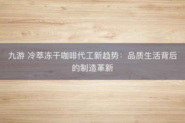 九游 冷萃冻干咖啡代工新趋势:品质生活背后的制造革新