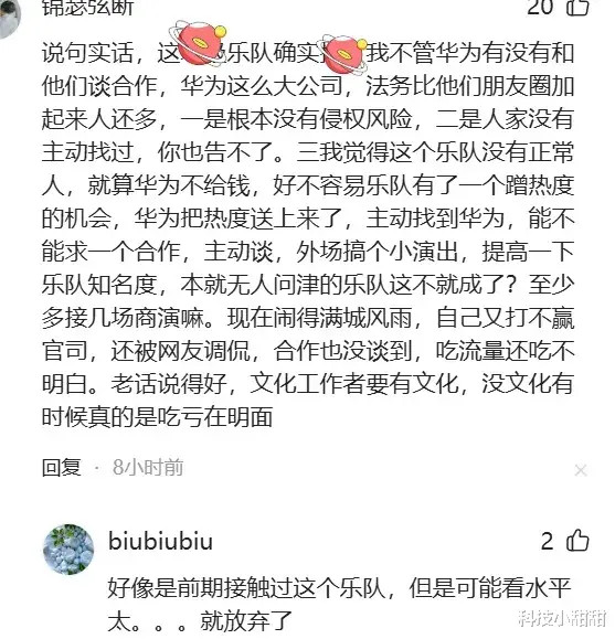 这,让东说念主怕怕啊,华为法务不会真实把这个乐队给送进去吧?