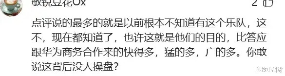 “点评说的最多的就所以前根蒂不知说念有这个乐队,这不,当今都知说念了,也许这即是他们的方针,比答理跟华为商务协作来得快得多,猛得多,广的多。你敢说这背后没东说念主操盘?”如若真实有东说念主在背后操盘,搞不好还真实如网友所言,别把我方搭进去了。