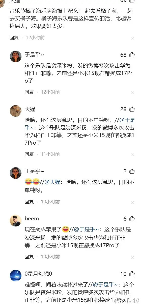 有酷爱的是,这个橘子海乐队,发一个声明,尽然更换手机,如若它换成华为,还说得往时,这,换来换去,意图是否过于明显?