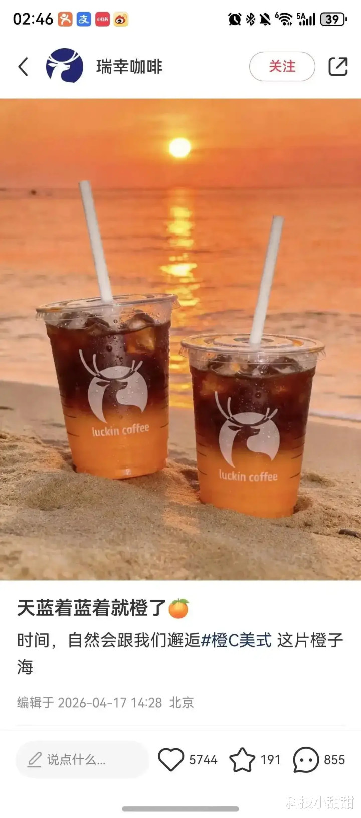 还有瑞幸亦然本日4月17日发布“天蓝着蓝着就橙了,本事,当然会跟咱们相遇#橙C好意思式这片橙子海”。
