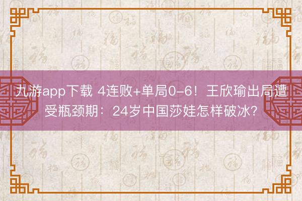 九游app下载 4连败+单局0-6!王欣瑜出局遭受瓶颈期:2